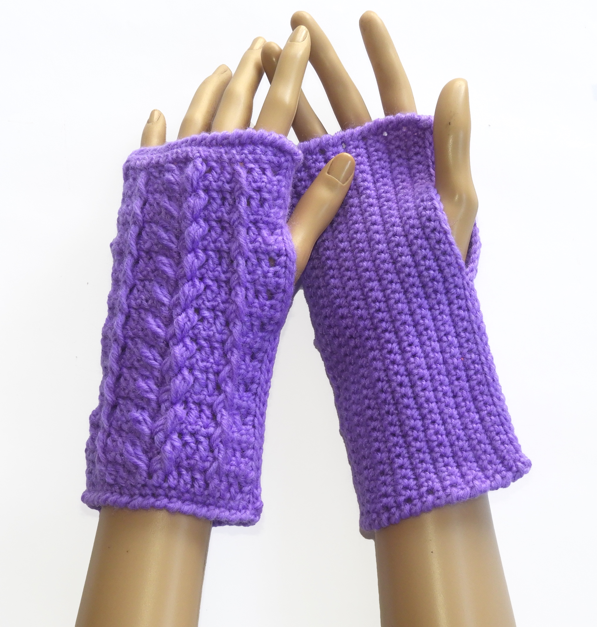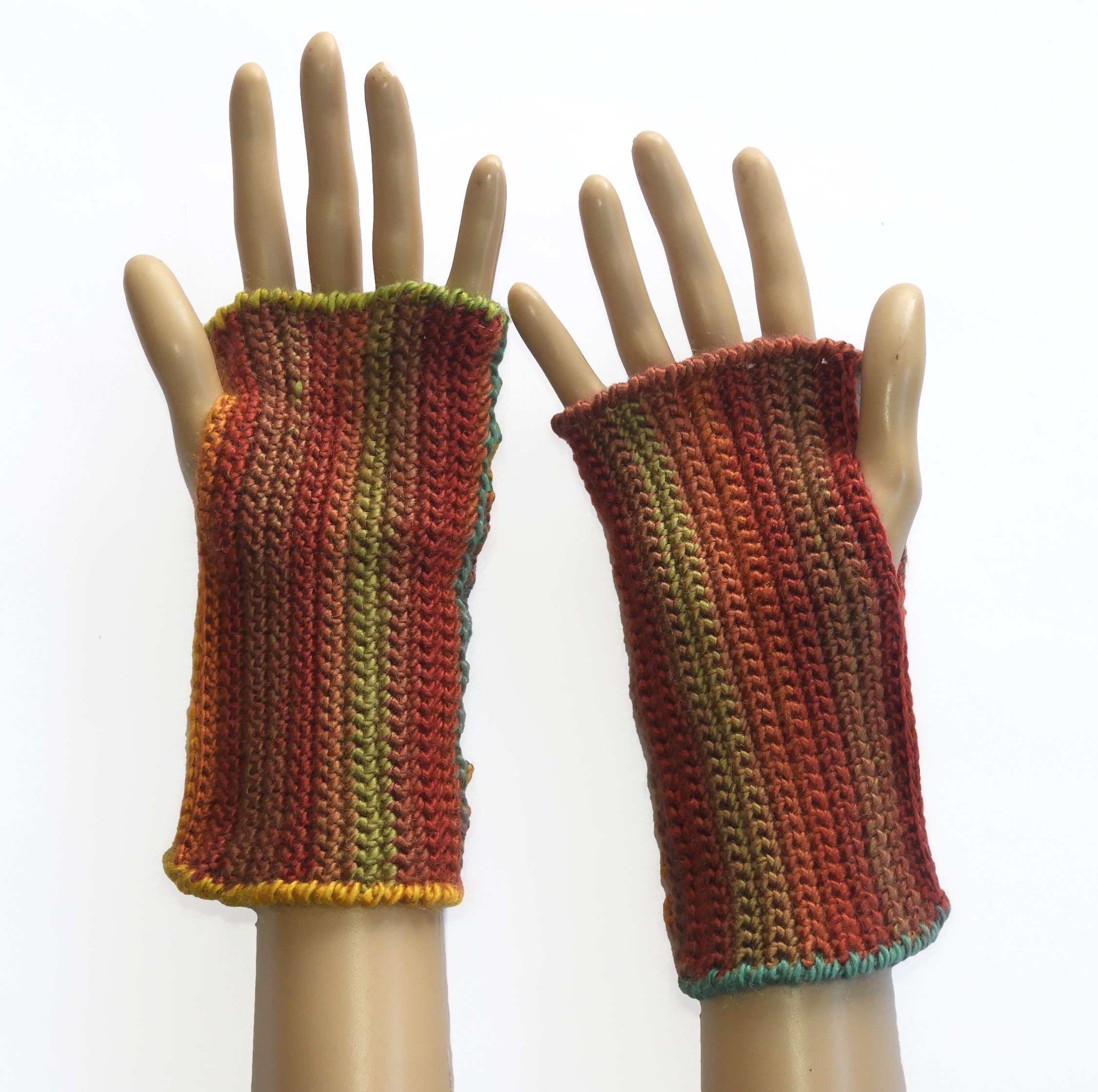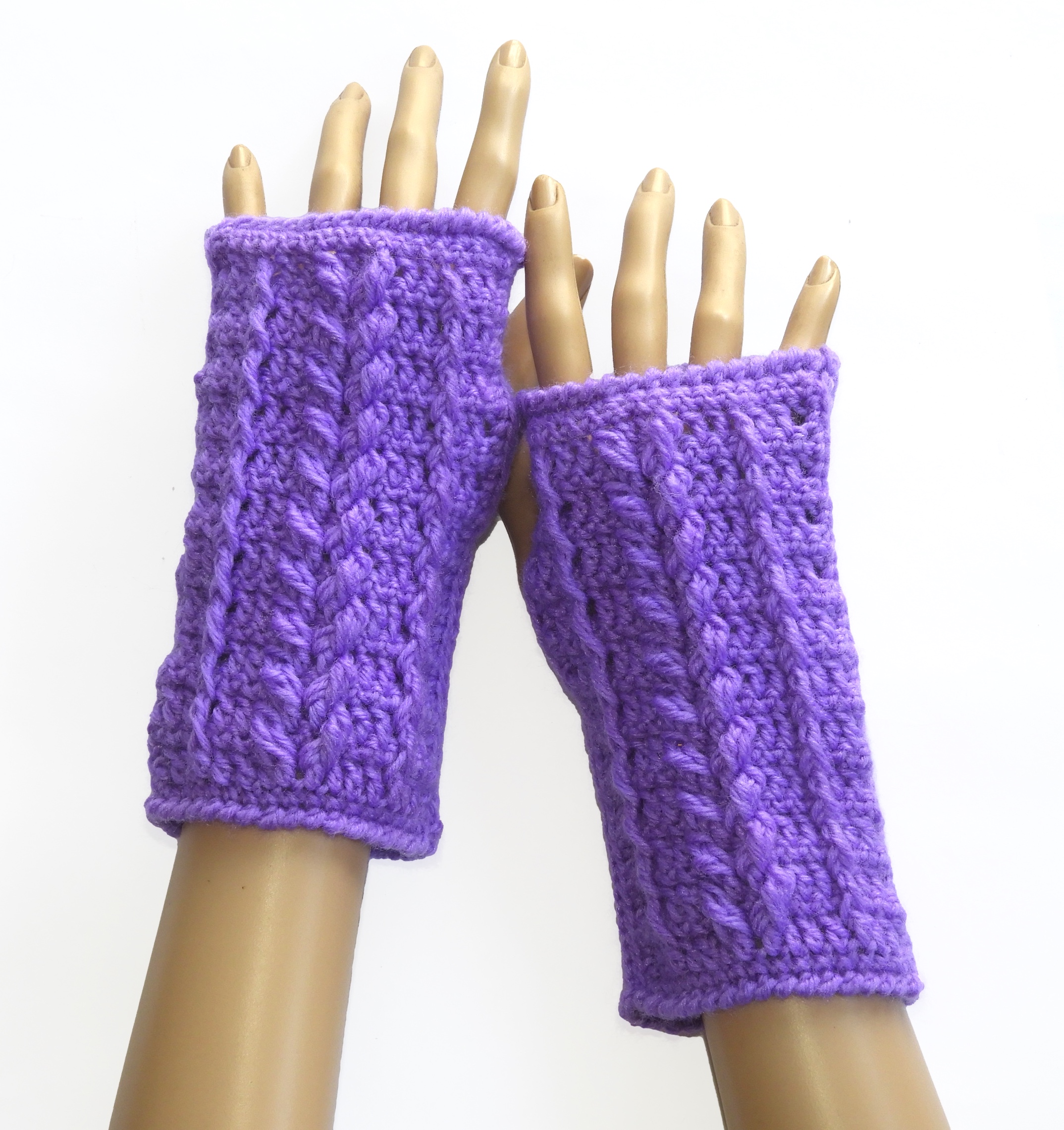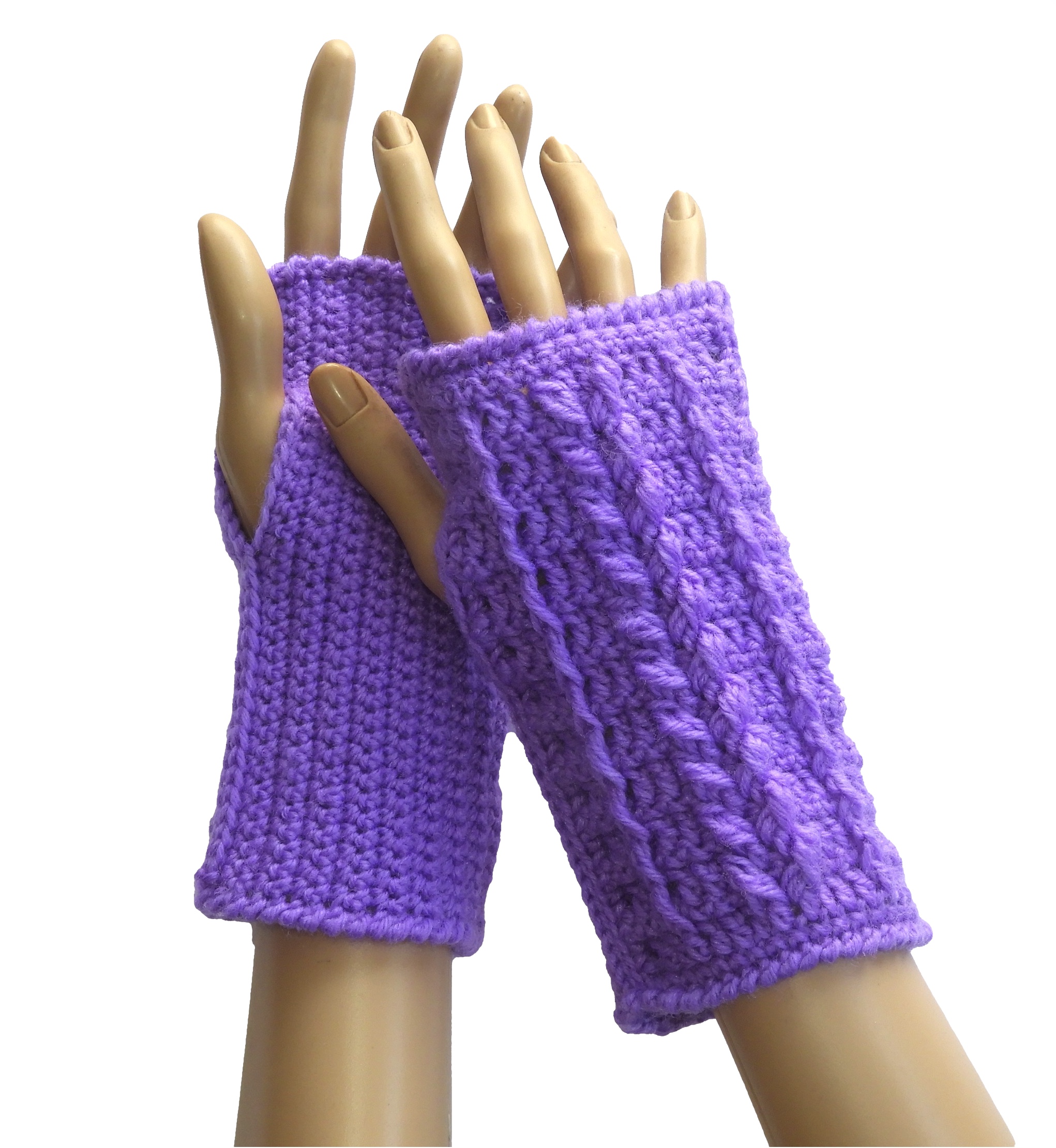 Fingerless gloves are just the thing for keeping hands warm but fingers nimble. They are practical, yet stylish, take very little time to make & require frugal amounts of yarn. Any type of 8ply yarn will give consistent results.