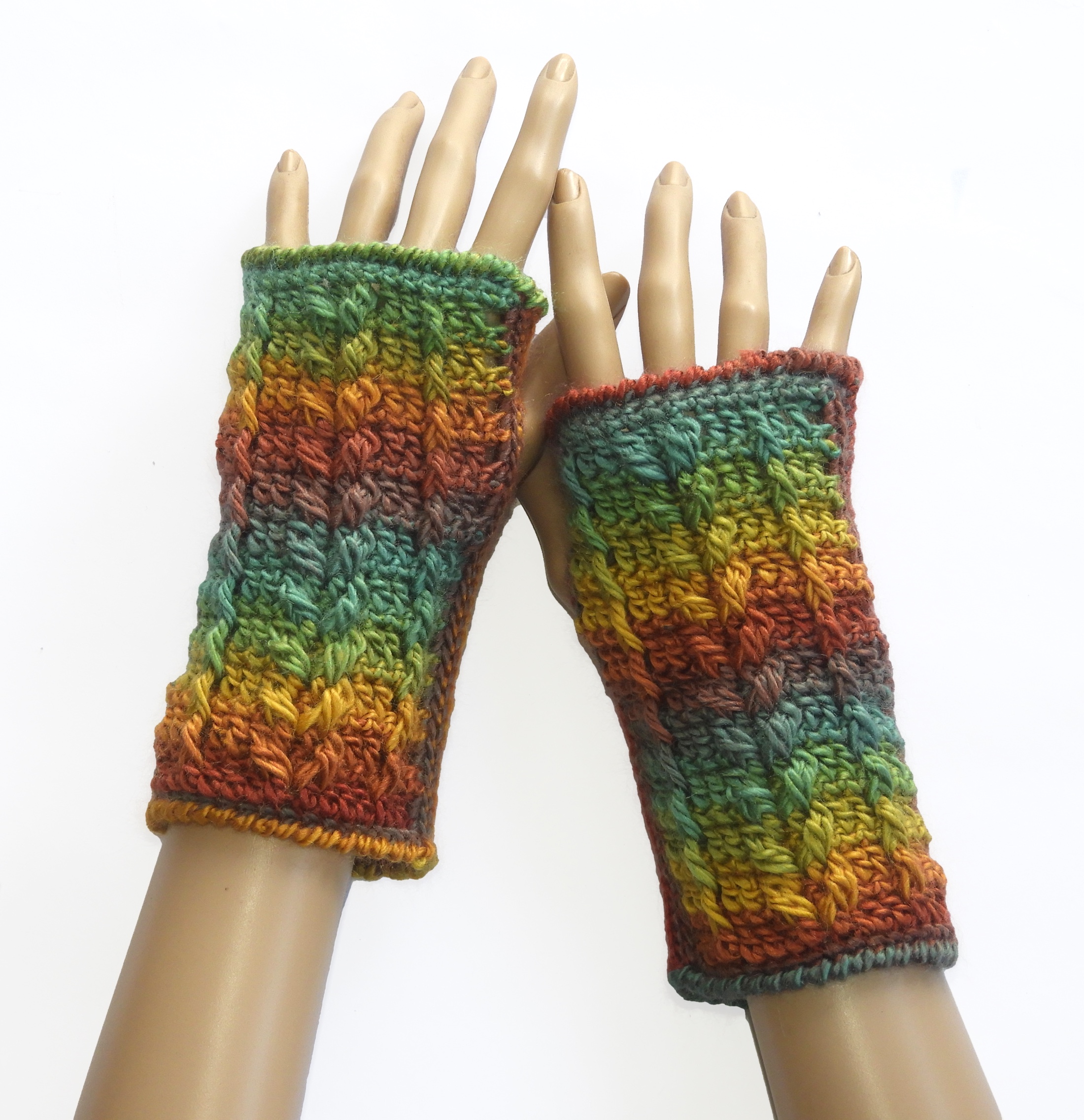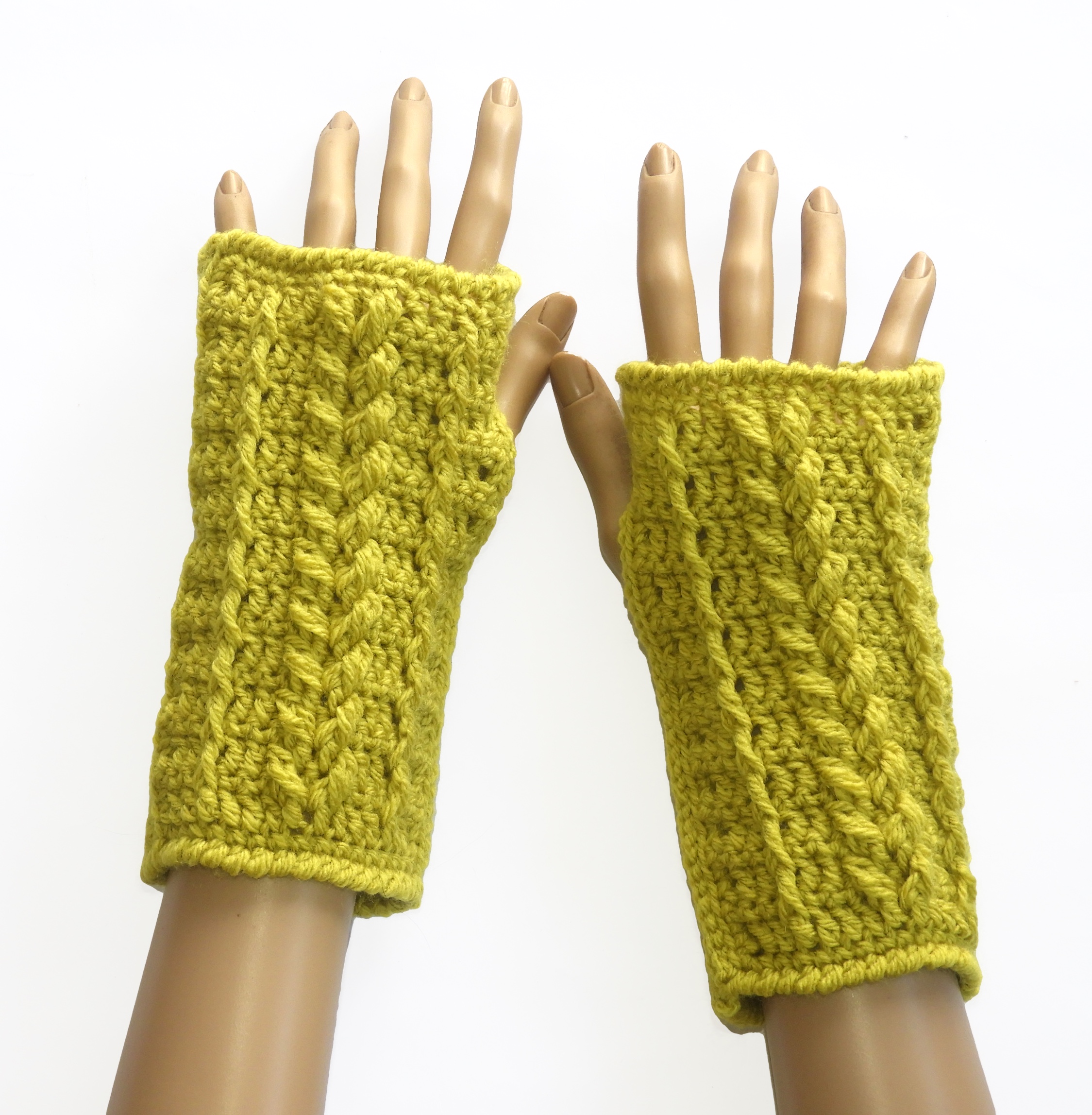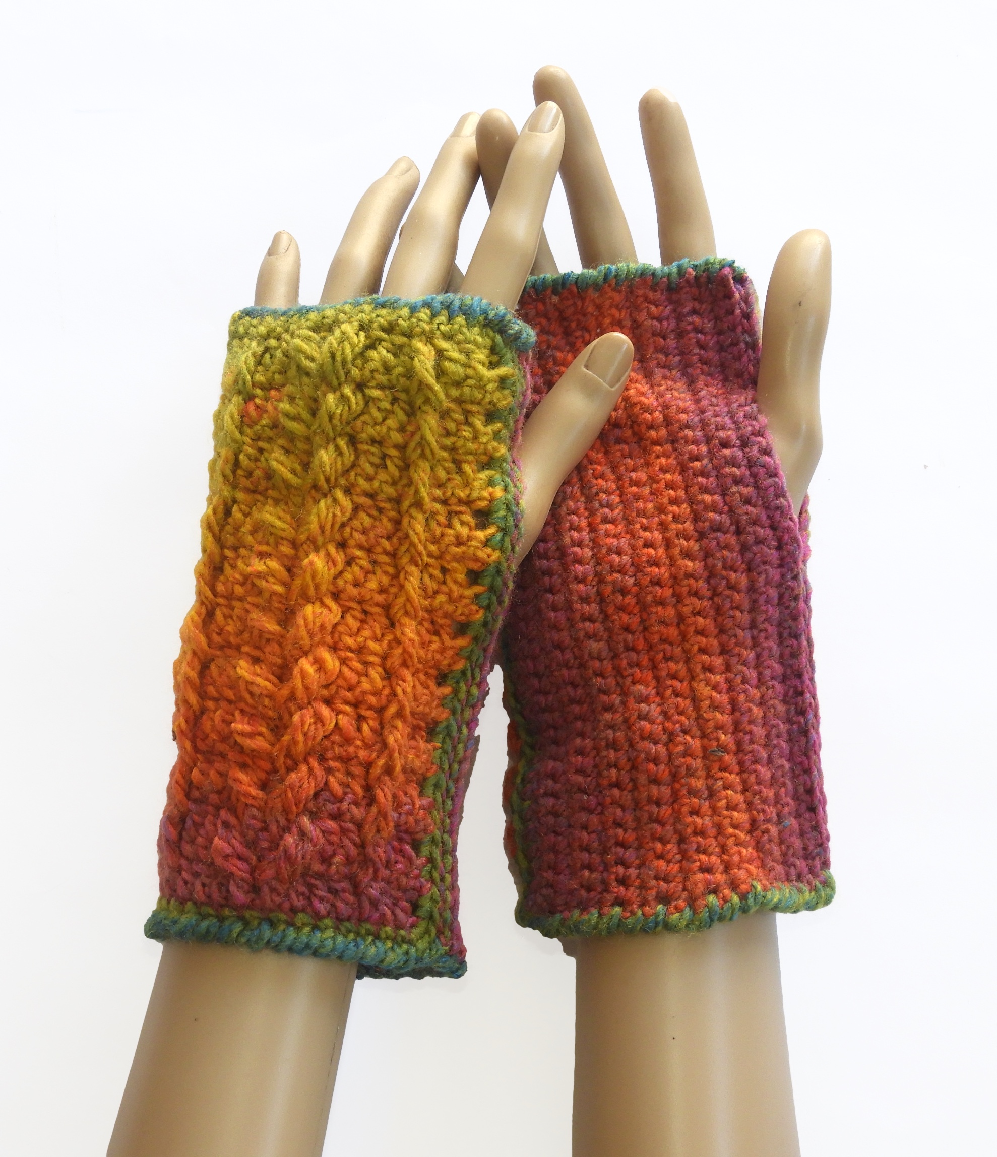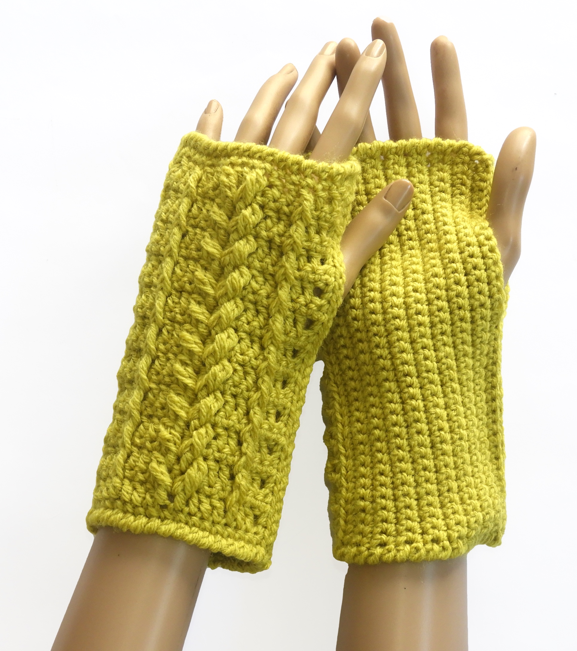 Fingerless gloves are just the thing for keeping hands warm but fingers nimble. They are practical, yet stylish, take very little time to make & require frugal amounts of yarn. Any type of 8ply yarn will give consistent results.