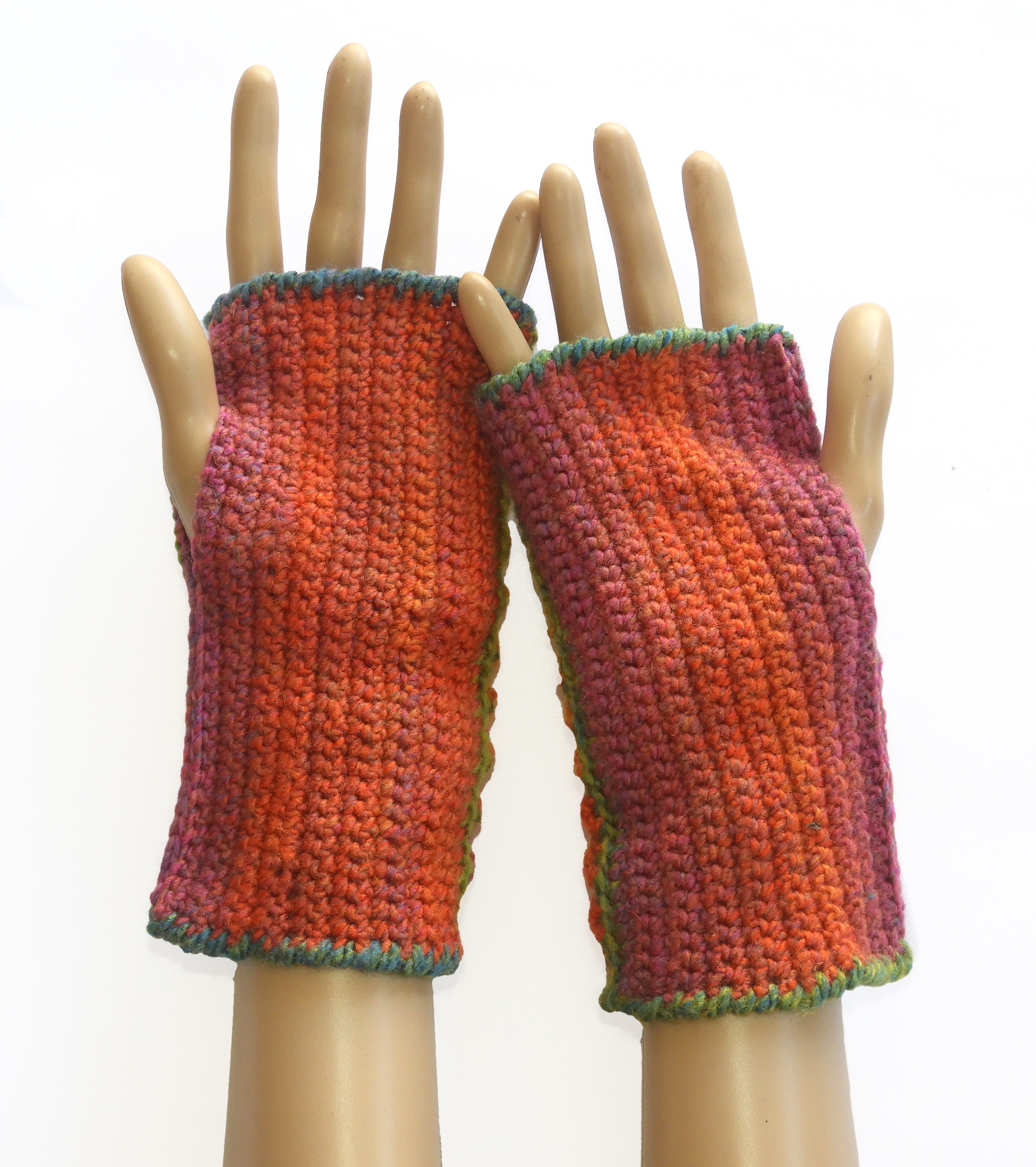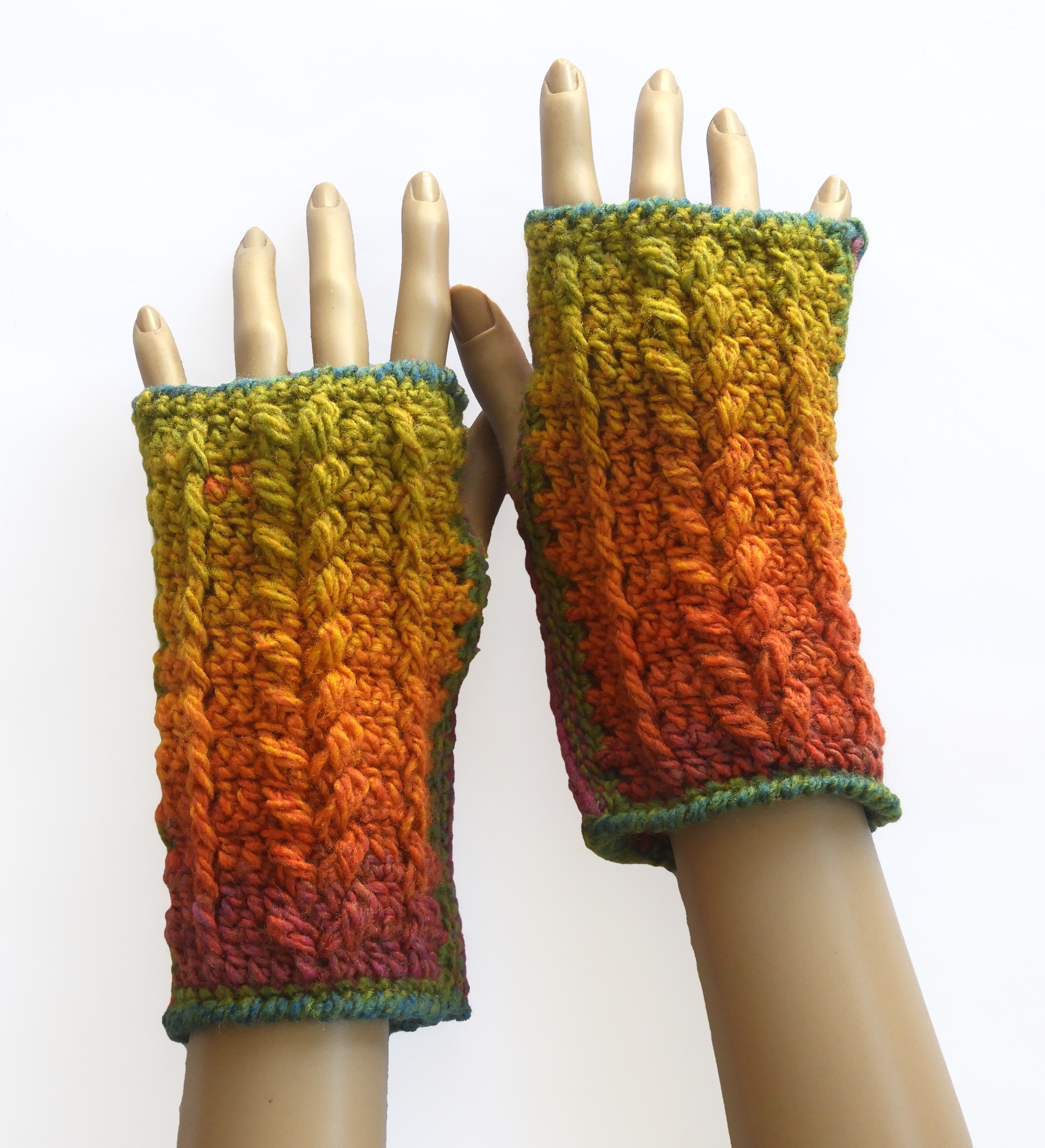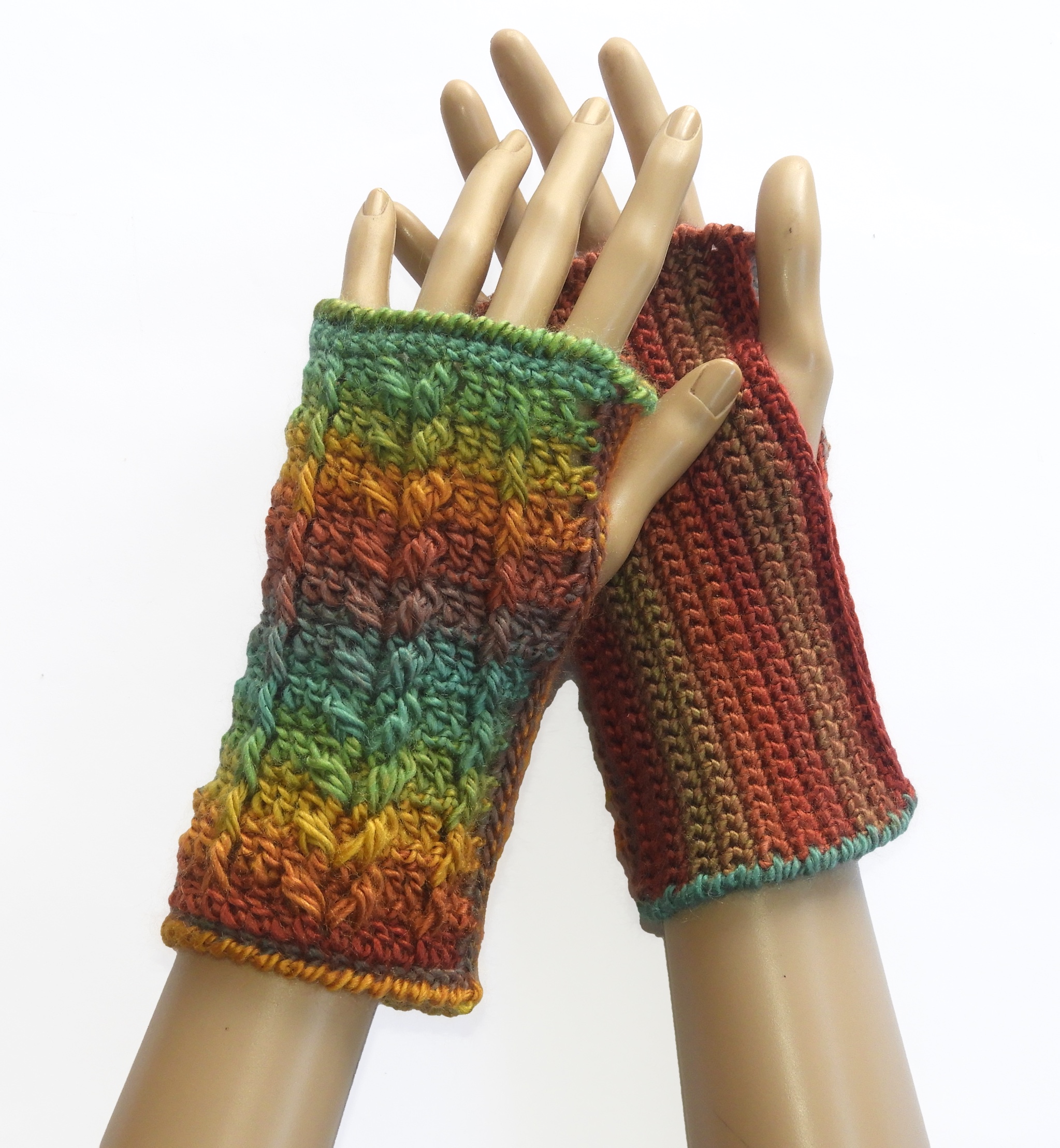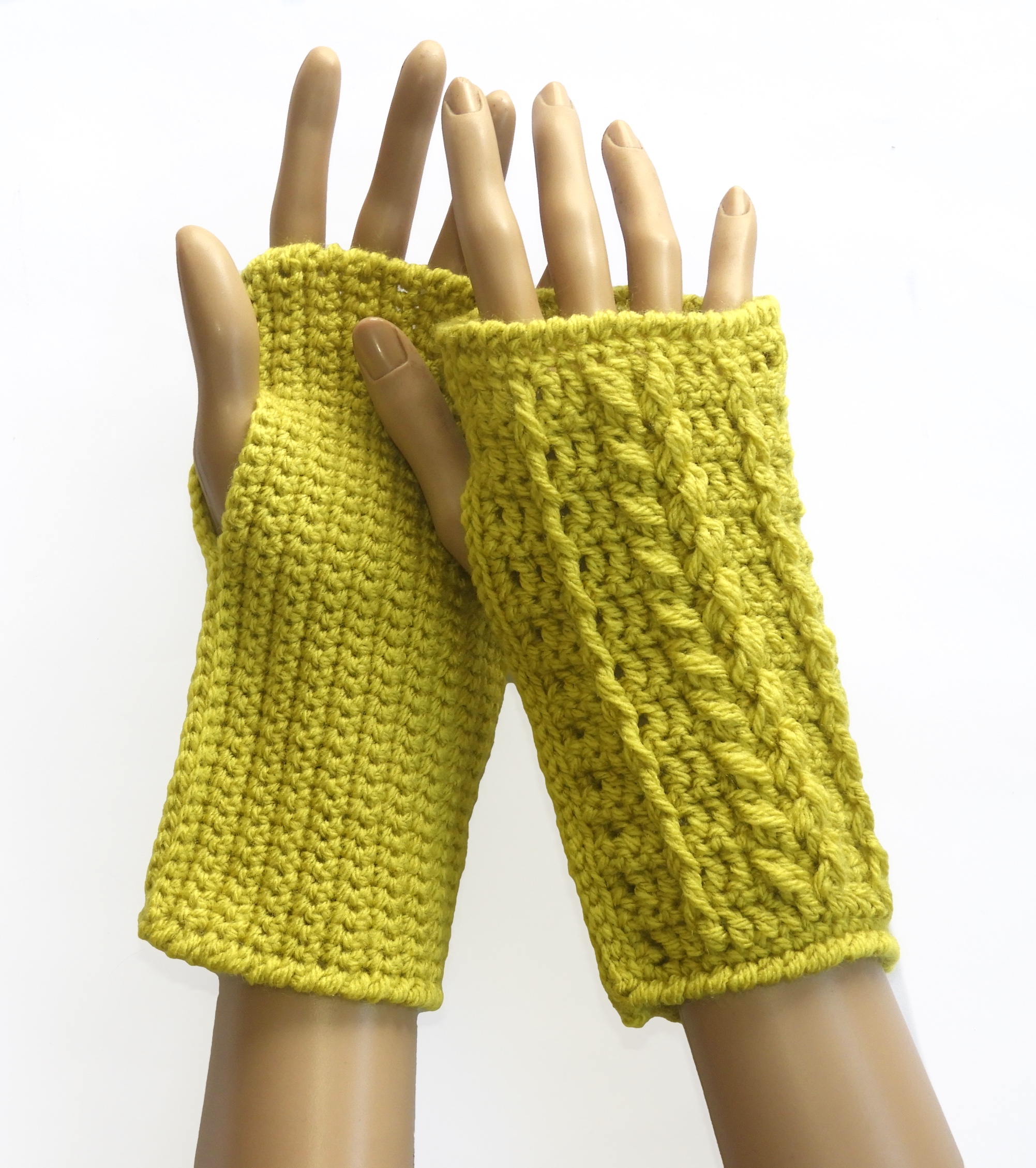Fingerless gloves are just the thing for keeping hands warm but fingers nimble. They are practical, yet stylish, take very little time to make & require frugal amounts of yarn. Any type of 8ply yarn will give consistent results.