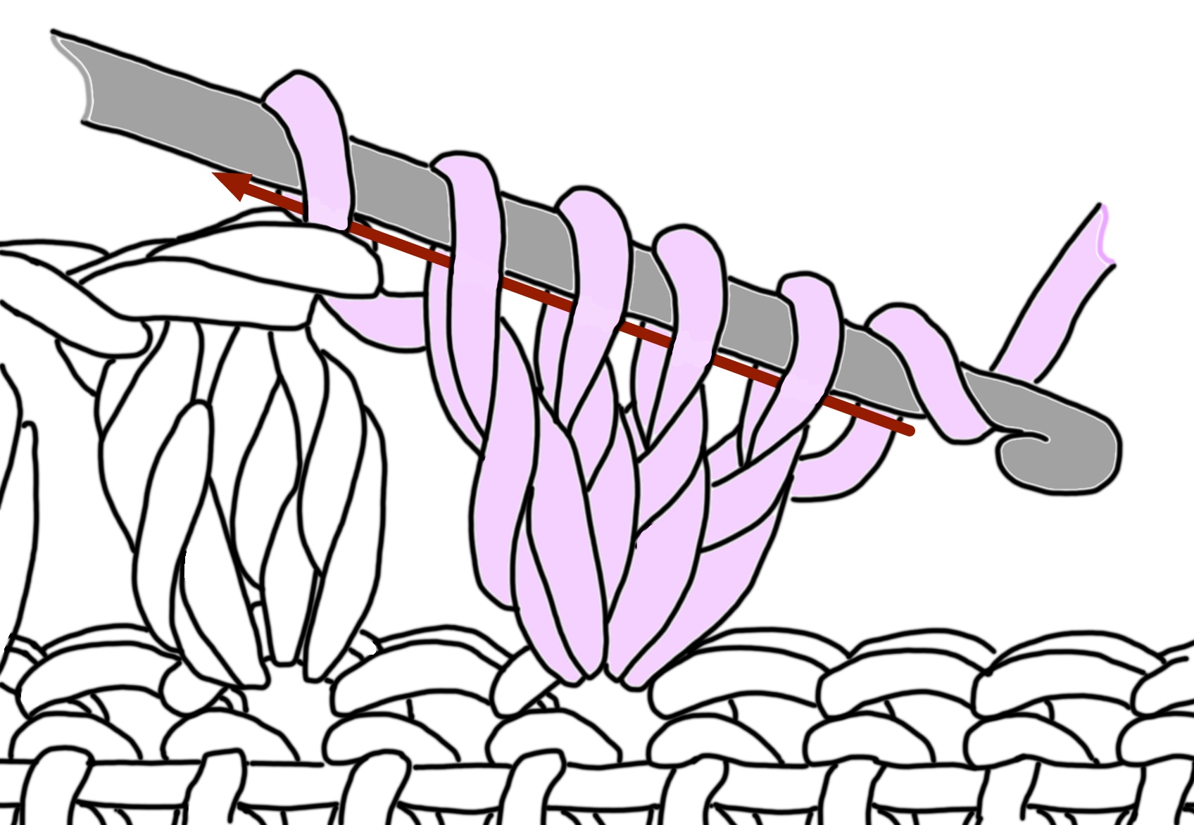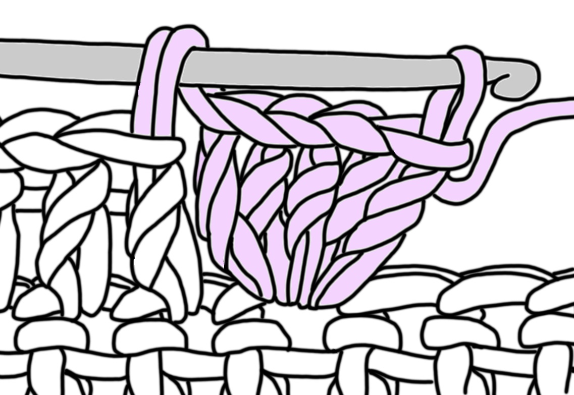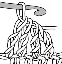 Clusters: are groups of unfinished stitches where the last loop of each unfinished stitch is left on the hook & then drawn together.