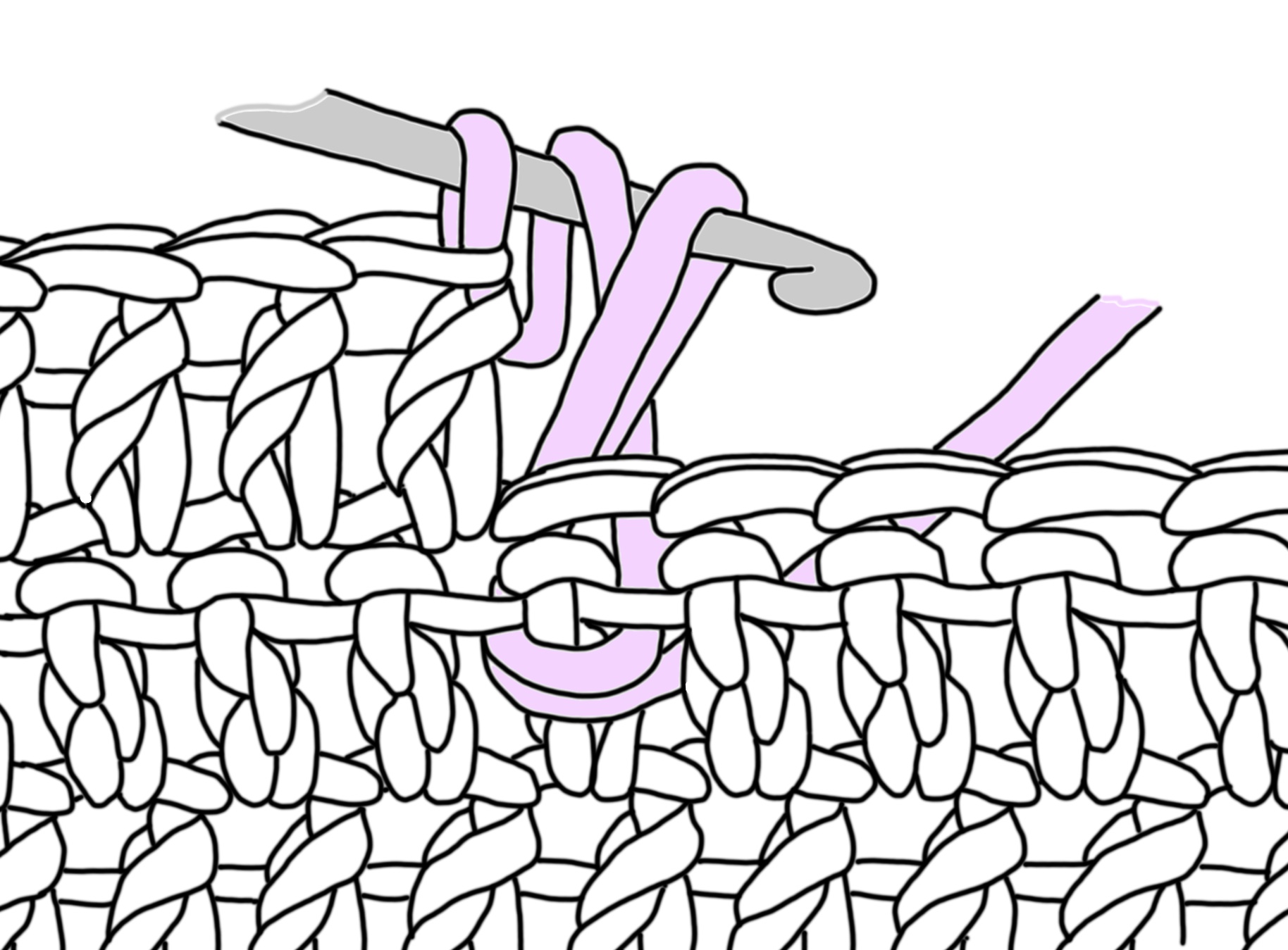 Subsequent rows: 2 ch ((beginning-chain) this is the first stitch of the row & therefore must be counted & used as a stitch), turn, inset hook under both loops of next & draw up a loop, then work from 2 in each stitch across the row