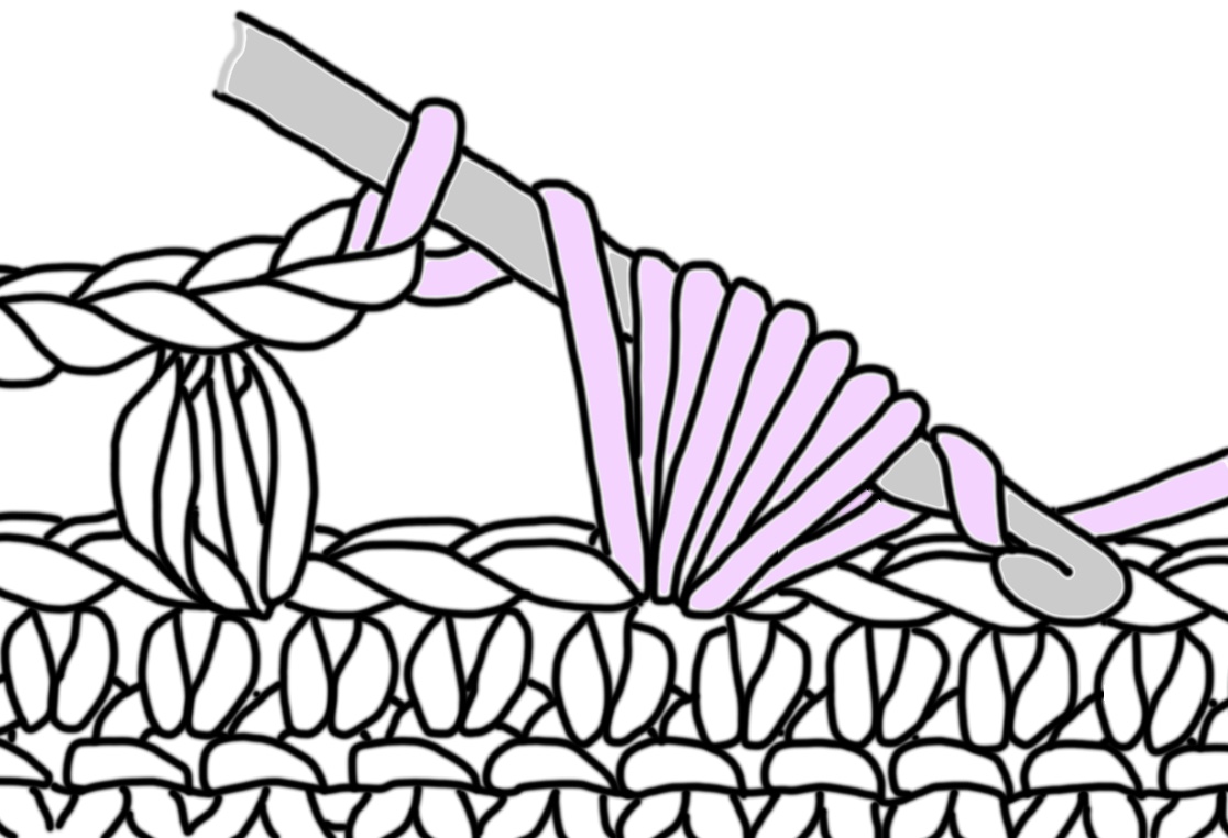 Puff stitches: are a group of loops drawn through the same stitch or space. The number of loops required will be indicated by the pattern